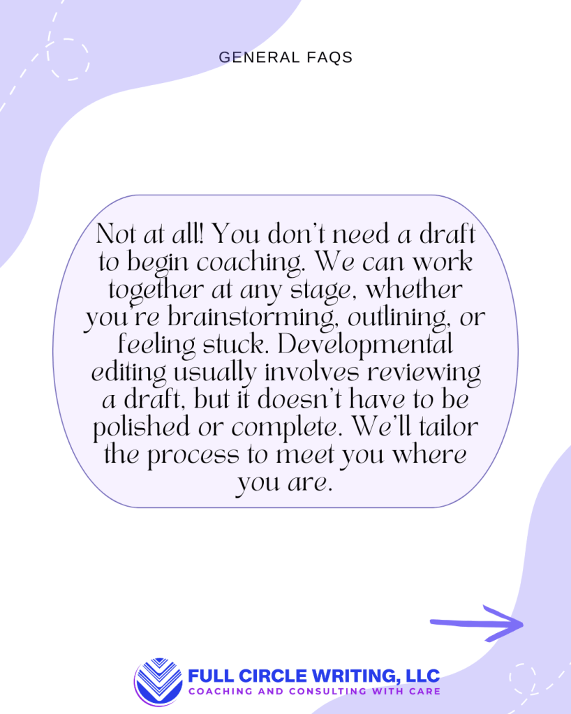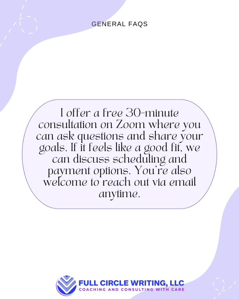 If you’d like to explore working together, book a no-cost consultation today or simply contact me to start the conversation. Let’s chat about your goals and how I can support your writing journey.